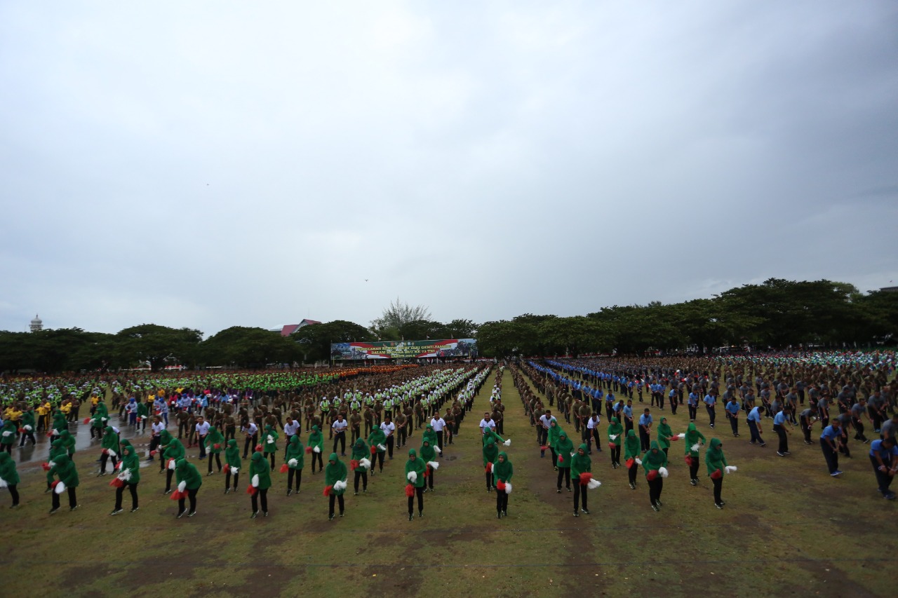 Banda Aceh- Komando Daerah Militer Iskandar Muda menggelar tari “ GEMU FAMIRE” pemecahan rekor MURI bertempat di lapangan Blang Padang, Banda Aceh. Selasa (4/9/18). Acara tersebut diikuti Panglima Kodam Iskandar Muda Mayjen TNI Teguh Arief Indratmoko, Ketua Persit Kartika Chandra Kirana PD Iskandar Muda Ny. Cut Soraya Indratmoko serta dikuti ribuan peserta.