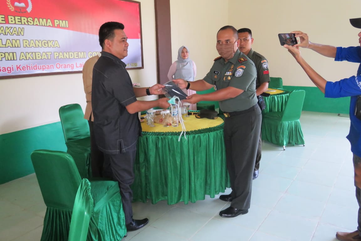 Simeulue – Seusai melaksanakan donor darah, Komandan Kodim 0115/Simeulue, Letkol Inf Yogi Bahtiar,S.Kom.M.B.A membagikan masker secara gratis kepada Tenaga medis, masyarakat dan unsur Forkopimda Simeulue di Makodim setempat, Selasa (07/04/2020).