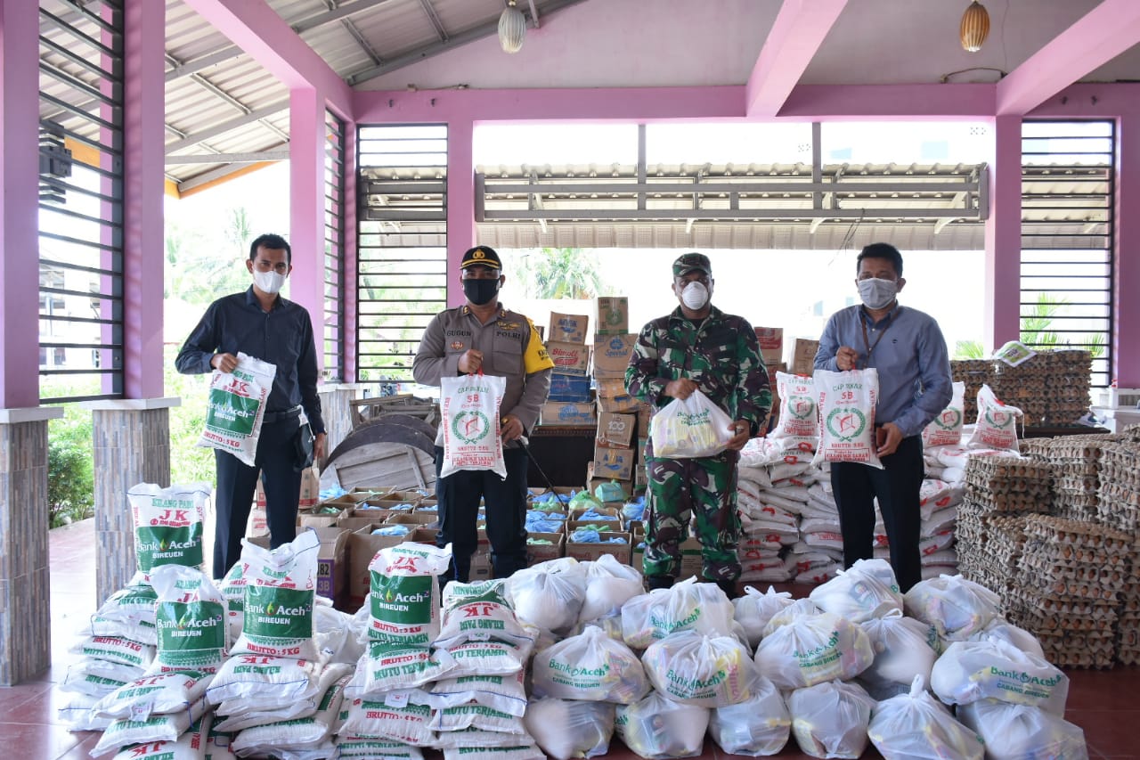 Sembako tersebut diberikan langsung oleh Dandim 0111/Bireuen, Letkol Inf Zainal Abidin Rambe S.Sos. didampingi Kapolres Bireuen, AKBP Gugun Hardi Gunawan SIK Msi, Pemimpin Bank Aceh Syariah Bireuen Hendra Supardi dan Pemimpin BRI Cabang Bireuen Akhmad Farizal.