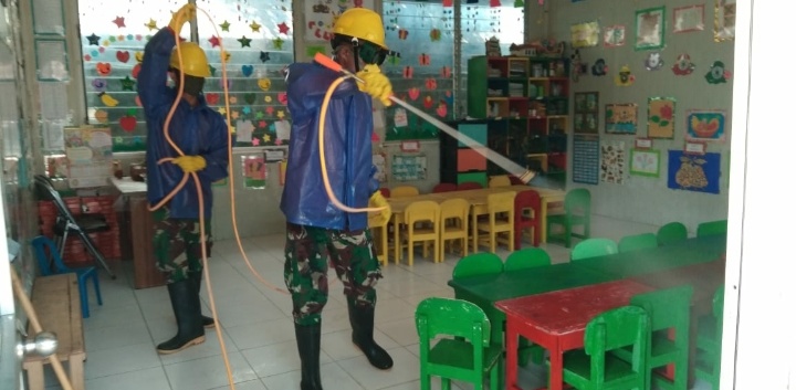 Penyemprotan dimulai dari TK Kartika XIV-1, SD Kartika XIV-1 dan SD Kartika XIV-2, SMP Kartika XIV-1 dan SMU Kartika XIV-1 dan Kantor Pengurus Persit KCK Kodam IM.