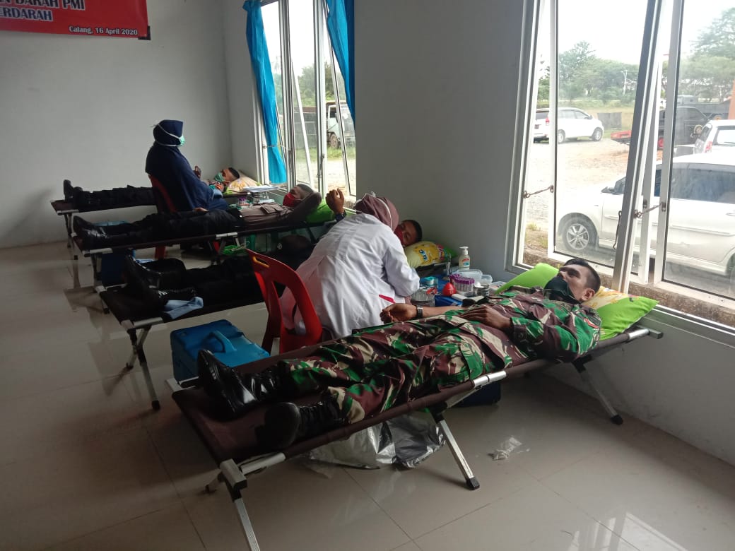Aceh Jaya – Puluhan Personil TNI Kodim 0114/Aceh Jaya ikut berpartisipasi pada kegiatan donor darah yang diselenggerakan oleh Polres Aceh Jaya, Kamis (16/4/2020).