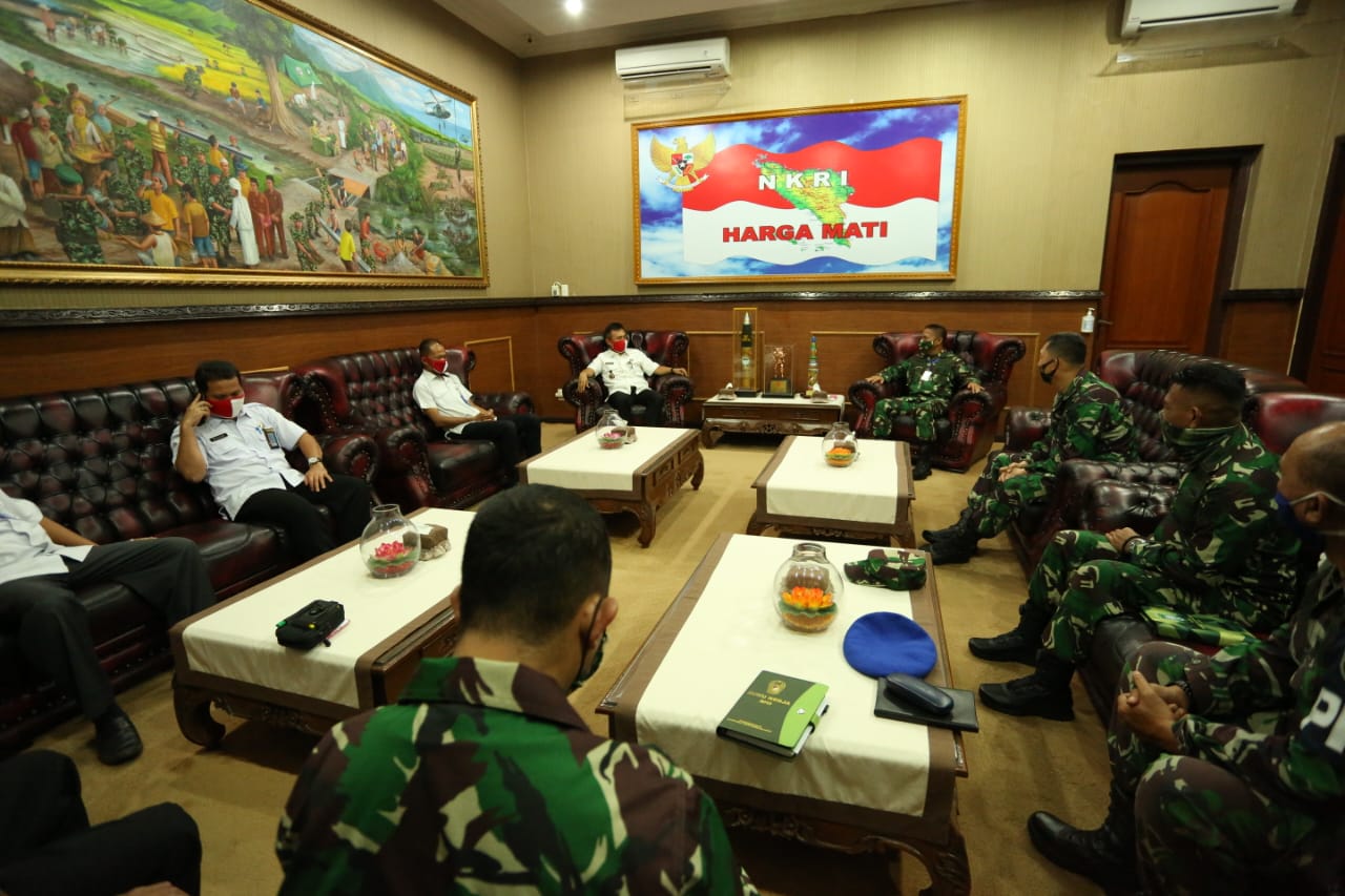 Banda Aceh, Panglima Kodam Iskandar Muda, Mayjen TNI Hassanudin S.I.P., M.M., menerima Audensi dari Kepala Badan Narkotika Nasional (BNN) Provinsi Aceh, Brigjen Pol Drs. Heru Pranoto. MSi di Ruang tamu Pangdam IM, Makodam IM, Rabu (20/05/20).