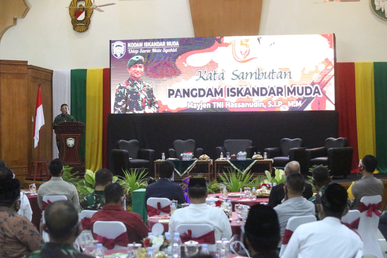 Kodam Iskandar Muda atas kerja sama dengan Wali Nanggroe, Forkopimda, dan perwakilan komponen masyarakat Aceh untuk duduk bersama di forum ini, saling jujur, saling percaya, saling mendengarkan dan menyimak aspirasi untuk selanjutnya Kodam Iskandar Muda akan menempatkan diri bersama semua komponen masyarakat Aceh dalam membangun Aceh yang lebih maju.