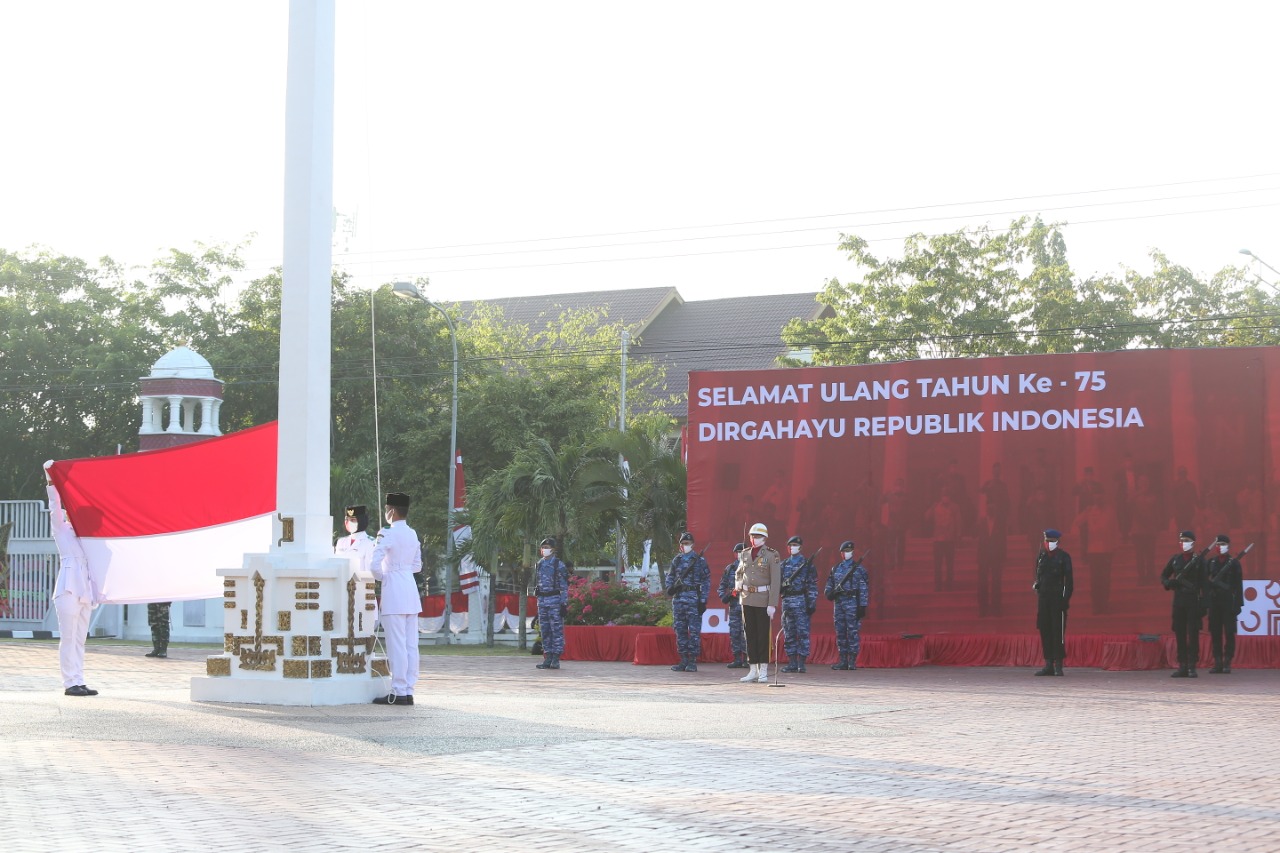 Peringatan HUT RI yang berlangsung khidmat itu dilakukan dengan menerapkan protokol kesehatan guna mencegah penyebaran virus korona (Covid-19). Seluruh peserta upacara terlihat menggunakan masker pelindung wajah dan jumlah peserta upacara juga terbatas.
