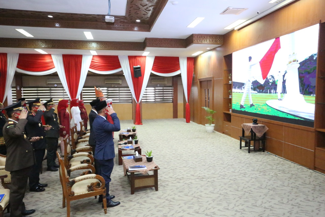 Selanjutnya, Forkopimda menuju Aula Sekda Aceh, Komplek Kantor Gubernur Aceh mengikuti Upacara bendera sekaligus menyaksikan Detik-detik proklamasi dari Istana Merdeka secara Virtual.