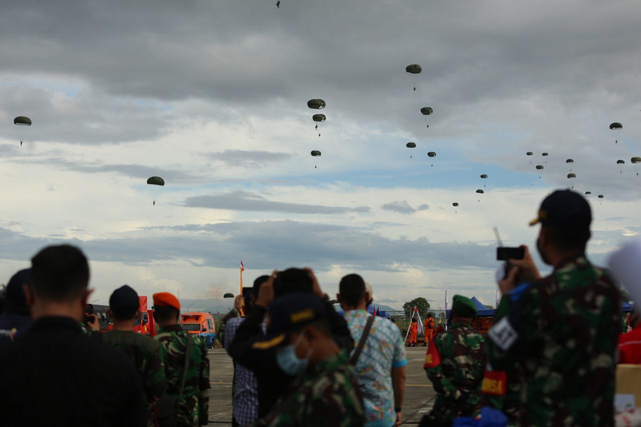 Tak hanya latihan tempur, prajurit TNI AU bersama lembaga pemerintah BNPB, Basarnas, PMI dan Dinas Sosial juga melakukan simulasi dan penanganan terkait kebencanaan.