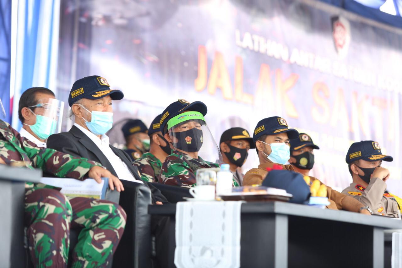 Aceh Besar – Panglima Kodam Iskandar Muda (Pangdam IM) Mayjen TNI Hassanudin S.I.P., M.M menghadiri kegiatan latihan antar satuan Komando Operasi TNI Angkatan Udara (Koopsau) I Jalak Sakti 2020 di Landasan Udara Sultan Iskandar Muda (Lanud SIM), Kabupaten Aceh Besar, Selasa (8/9/2020).