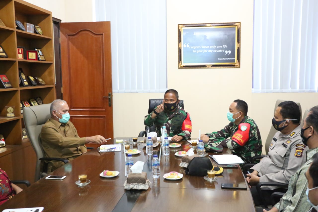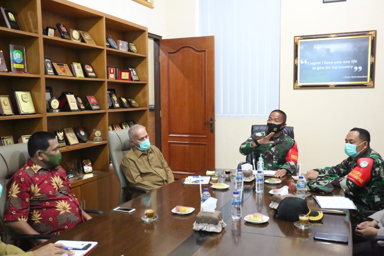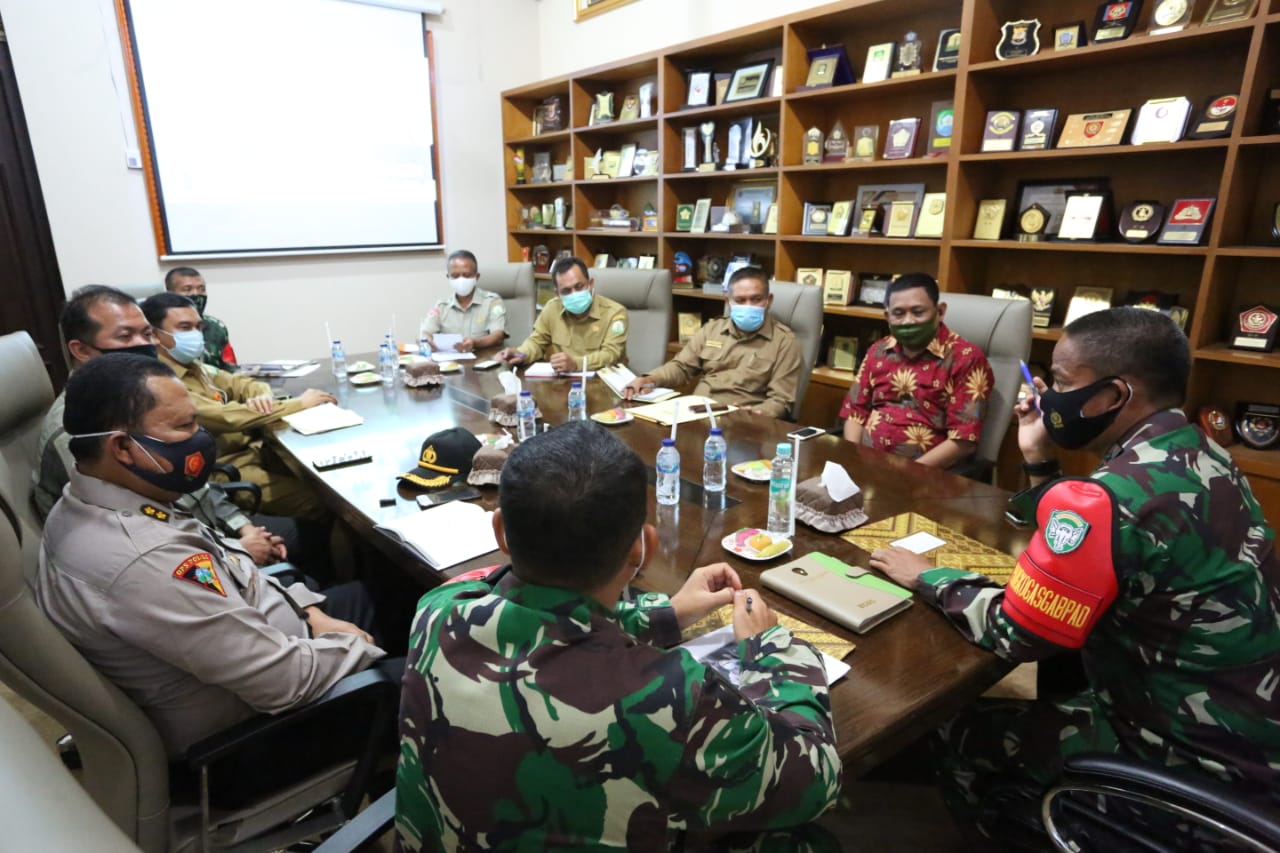 Banda Aceh – Panglima Kodam Iskandar Muda (Pangdam IM), Mayjen TNI Hassanudin, S.I.P., M.M memimpin rapat koordinasi (Rakor) penanganan Covid-19 bersama unsur Pemerintah Daerah (Pemda) Aceh di Makodam IM, Senin (28/9/2020).