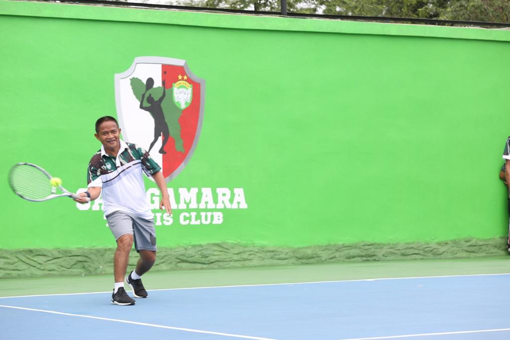 Dalam kata sambutannya, Panglima menyampaikan bahwa lapangan tenis yang diberi nama “Sanggamara Tenis Club” ini dapat digunakan oleh seluruh pihak.