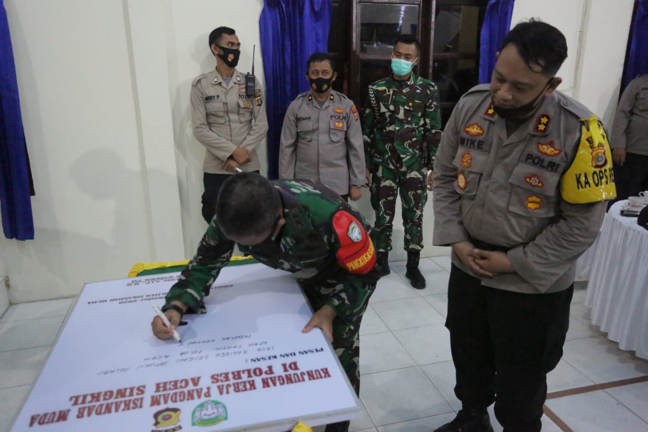“Berdasarkan Perbup Bupati Aceh Singkil No 32 Thn 2020 telah berupaya bersinergi dengan pihak TNI dalam rangka pencegahan penyebaran Covid-19,” ujar Kapolres.