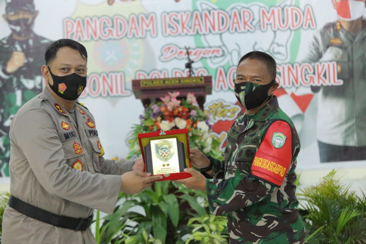Aceh Singkil – Pangdam Kodam Iskandar Muda (Pangdam IM), Mayjen TNI Hassanudin S.I.P., M.M., bersama Ketua Persit KCK Daerah Iskandar Muda bersilaturahmi ke Mapolres Aceh Singkil, Jumat (23/10/2020).
