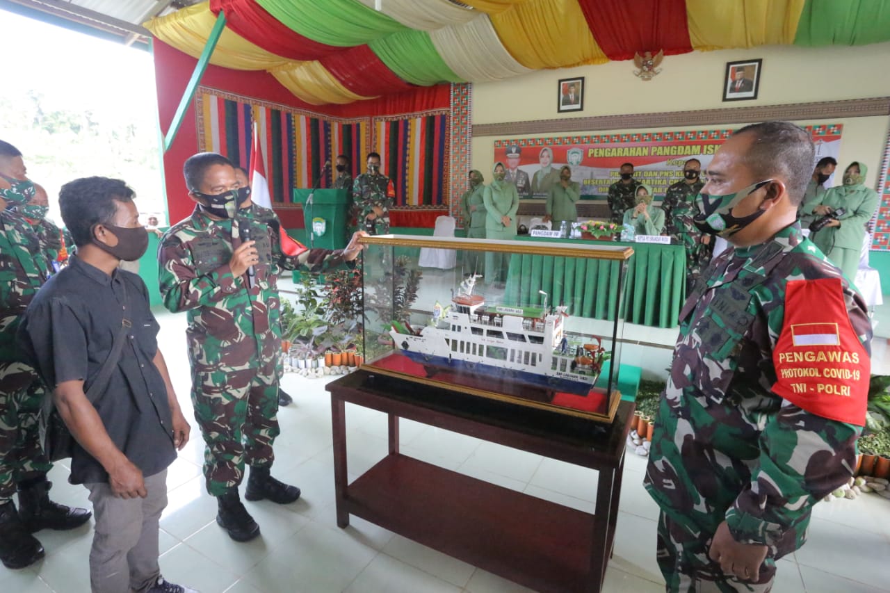 Miniatur kapal tersebut dibikin Acil dari pelepah rumbia yang diberi nama KMP Labuhan Haji. Atas pemberian tersebut, secara spontan Panglima langsung menghadiahkan sepeda motor untuk Acil. Terakhir, Pangdam IM melakukan penanaman pohon kenangan di halaman Makodim.