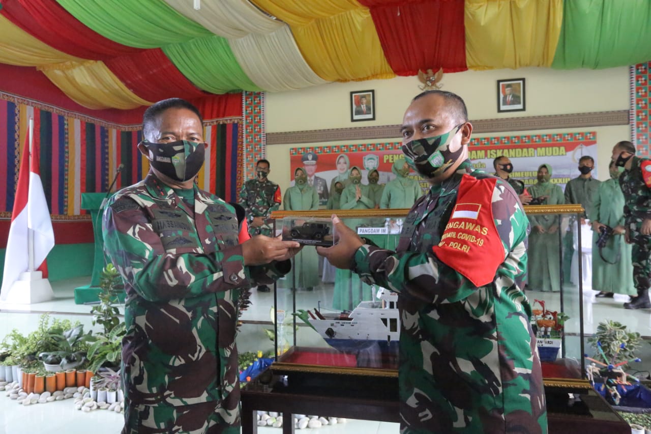 Usai memberikan pengarahan, Pangdam IM mendapat cendera mata dari Dandim 0115/Simeulue berupa dua miniatur, yakni mobil dinas Panglima dan kapal feri karya Acil, pemuda setempat.
