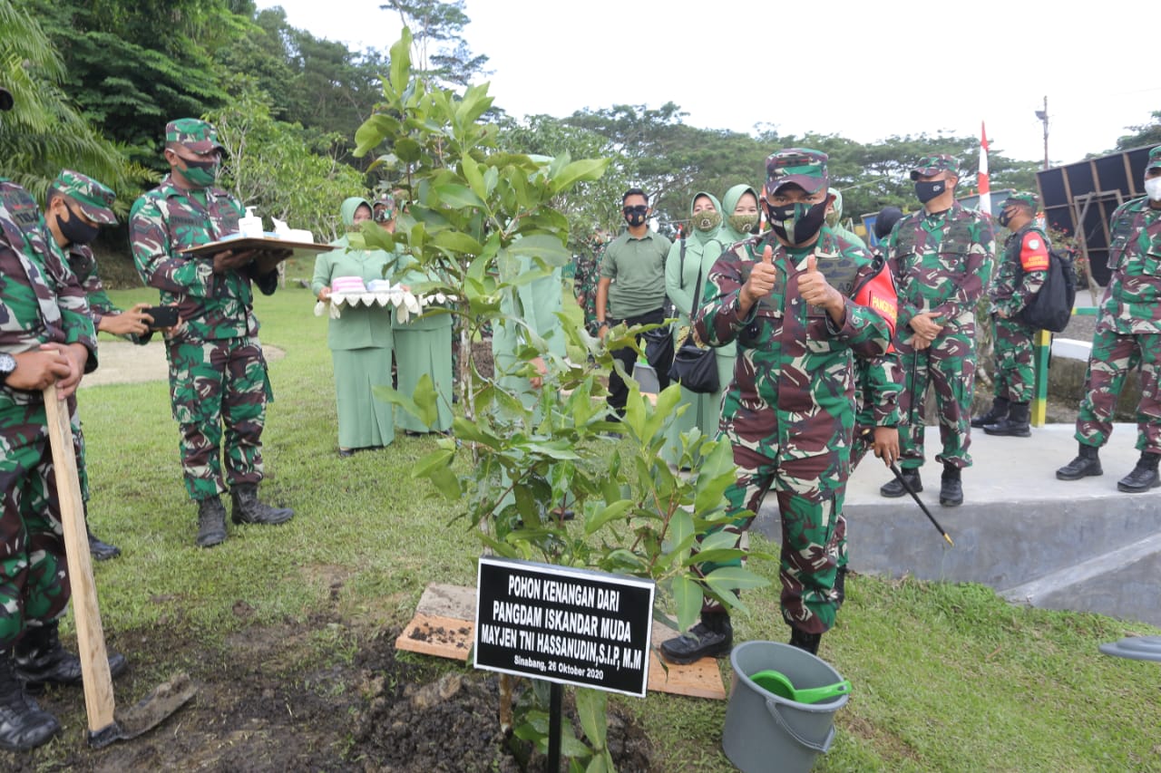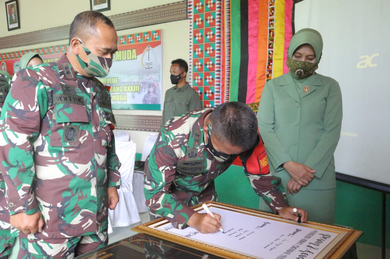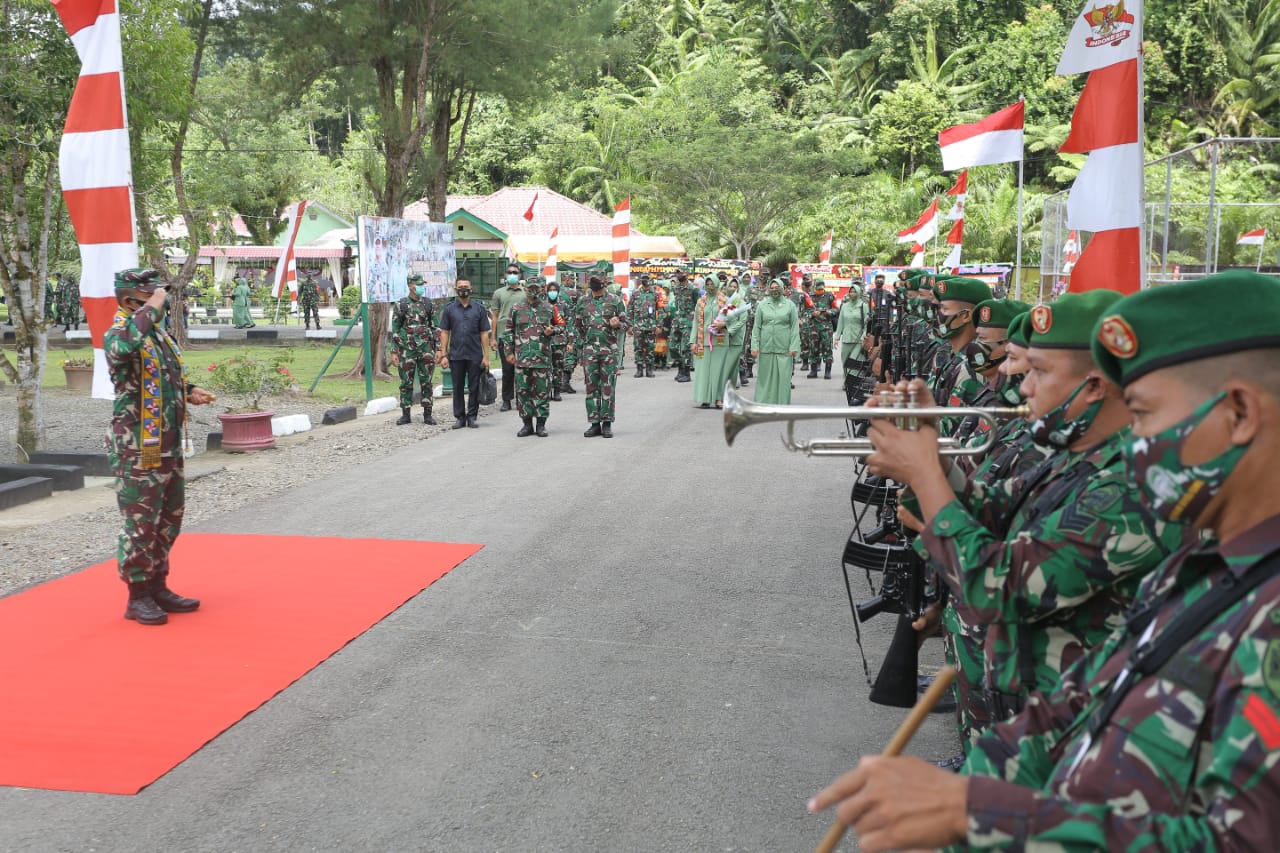 Simeulue – Panglima Kodam Iskandar Muda (Pangdam IM), Mayjen TNI Hassanudin, S.I.P., M.M., bersama Ketua Persit KCK Daerah Iskandar Muda melakukan kunjungan ke Makodim 0115/Simeulue, Senin (26/10/2020).