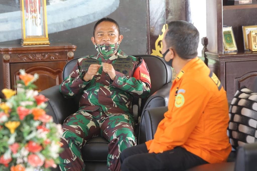 Banda Aceh – Panglima Kodam Iskandar Muda Mayjen TNI Hassanudin, S.I.P., M.M., menerima audiensi Kepala Basarnas Banda Aceh, Budiono, di Pendopo Pangdam IM, Selasa (10/11/2020).