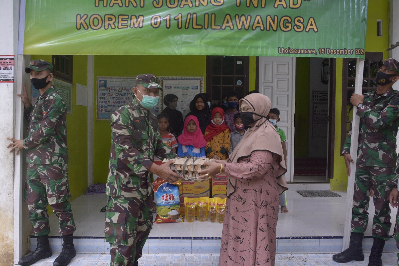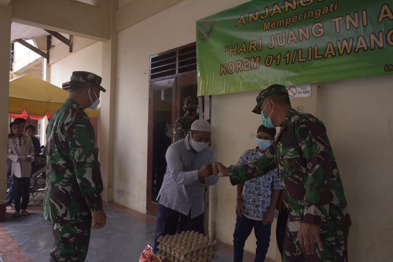 Kegiatan anjangsana dan doa bersama anak Yatim yang di adakan Korem 011/Lilawangsa itu, untuk memperingati Hari Juang Kartika dan TNI-AD secara sederhana namun hikmat, kata Kasrem 011/LW.