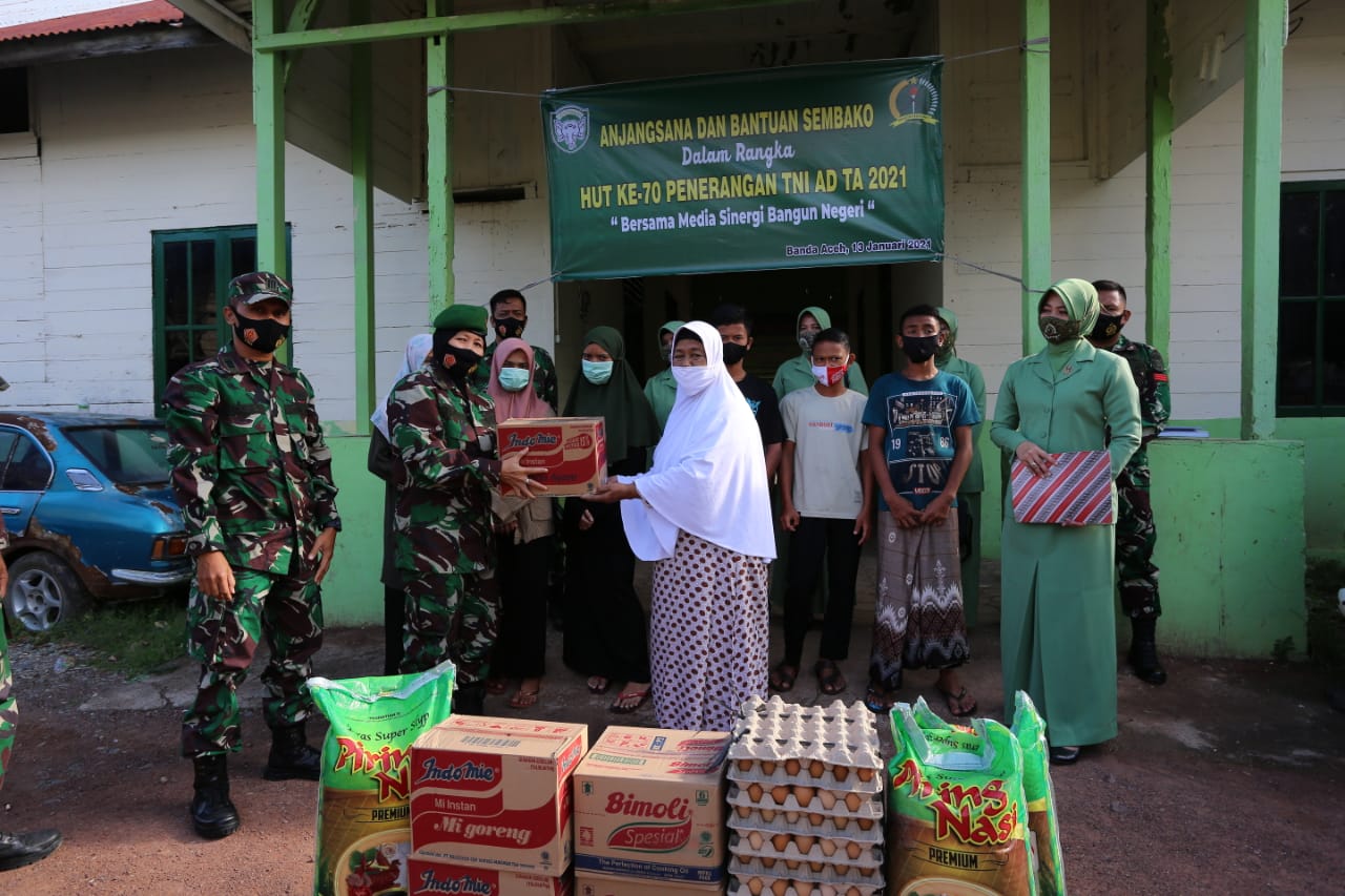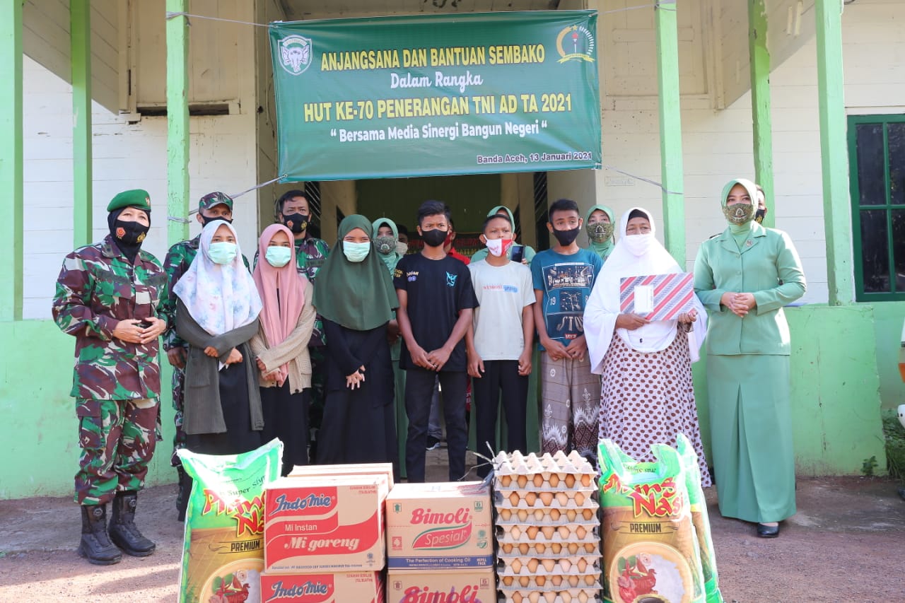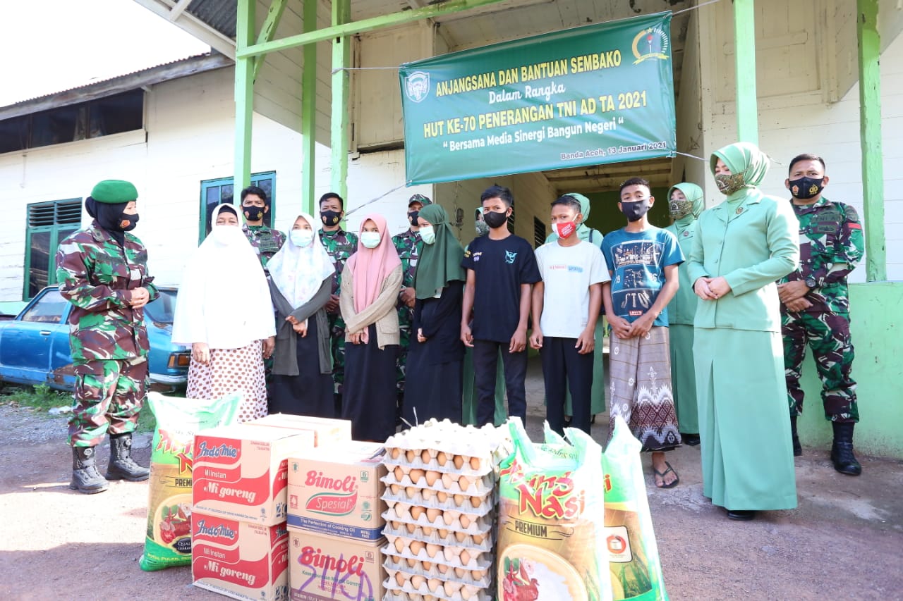 Banda Aceh – Keluarga Besar Penerangan Kodam Iskandar Muda (Pendam IM) melaksanakan anjangsana dan menyerahkan bantuan sembako ke Panti Asuhan Yayasan Penyantun Islam Rumoeh Seujahtera yang beralamat di Desa Setui, Kecamatan Baiturrahman, Kota Banda Aceh, Senin, 13 Januari 2021.
