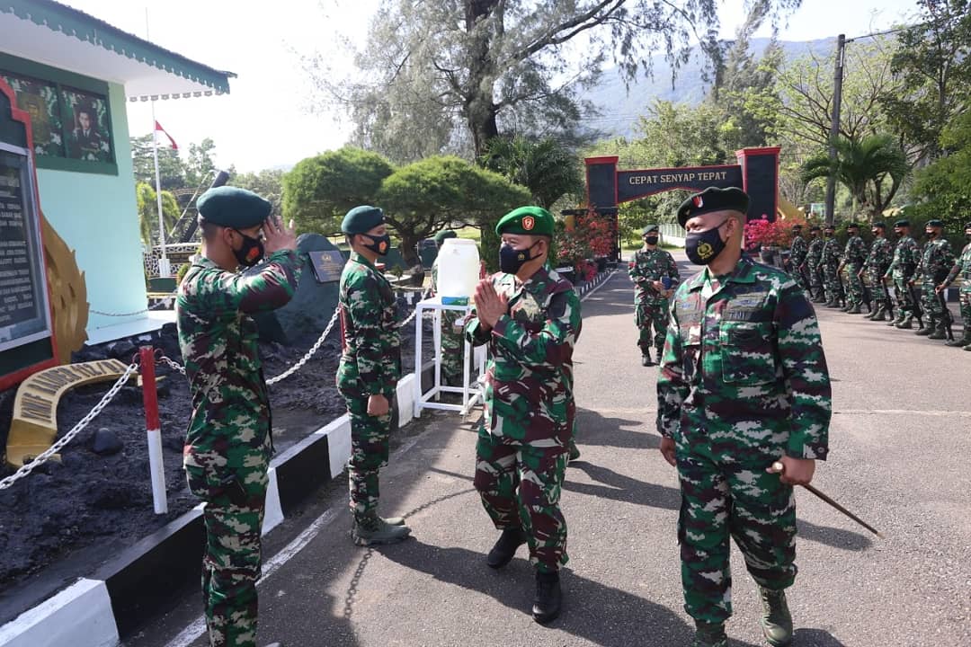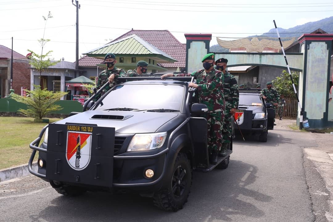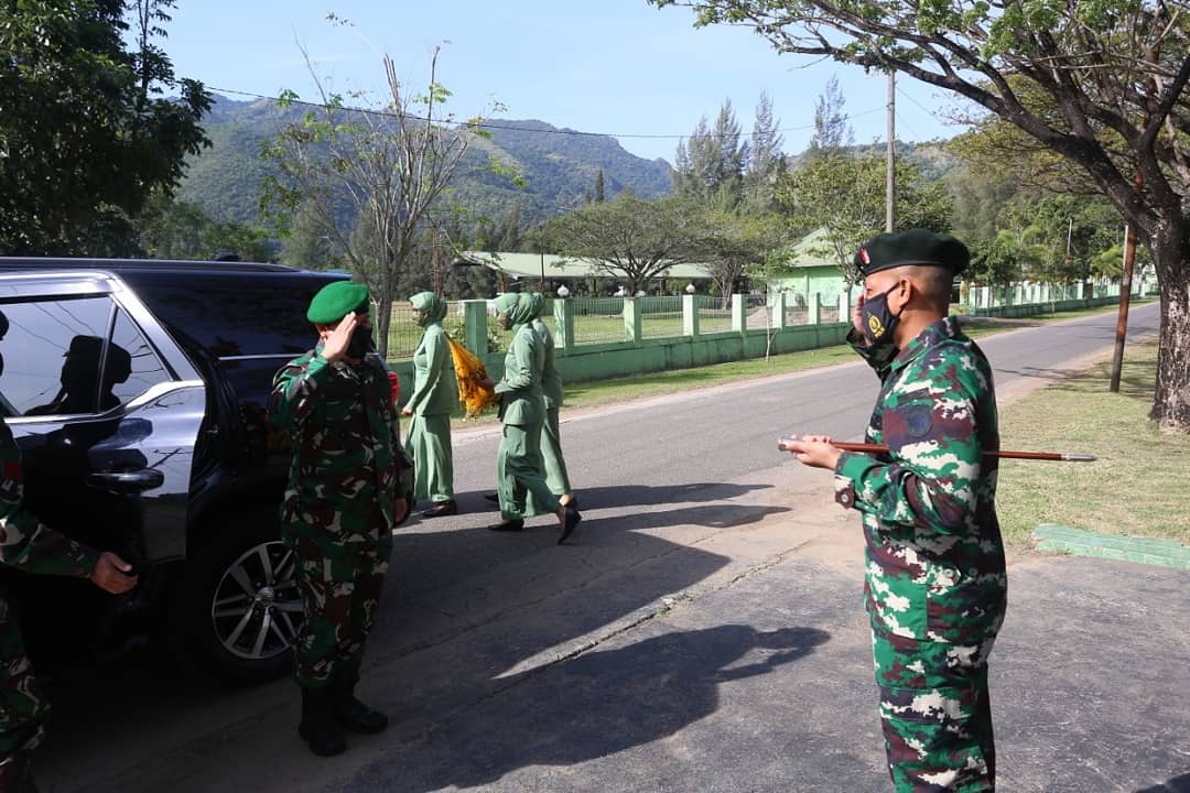 Kedatangan Kapoksahli Pangdam IM, disambut Danyon Raider 112/DJ Letkol Inf Liwang dan hormat jajar dari prajurit.