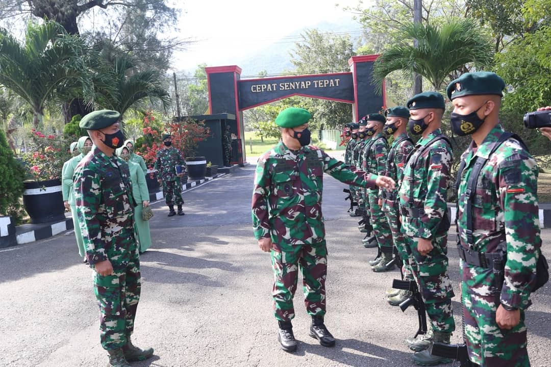 Aceh Besar – Kepala Kelompok Staf Ahli Pangdam Iskandar Muda (Kapoksahli Pangdam IM), Brigjen TNI Bambang Indrayanto didampingi Ny. Sri Bambang Indrayanto melaksanakan kunjungan kerja ke Markas Batalyon Infanteri Raider 112/Dharma Jaya (Mayonif R 112/DJ), pada Senin 1 Februari 2021 di Japakeh, Kecamatan Darul Imarah, Kabupaten Aceh Besar.