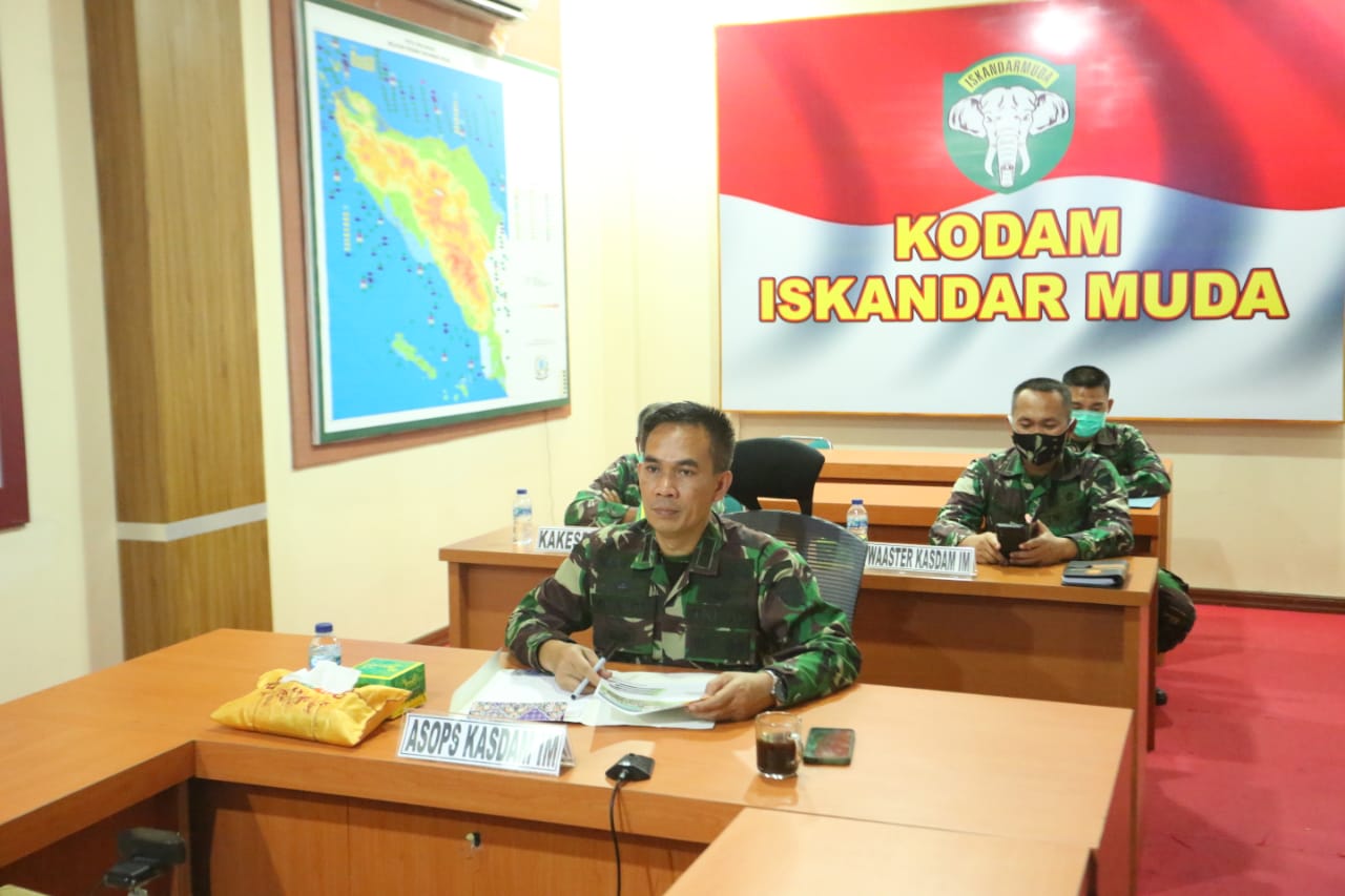 Asops Kasdam IM Ikuti Rakor Satgas Penanganan Covid-19 Nasional Secara Virtual