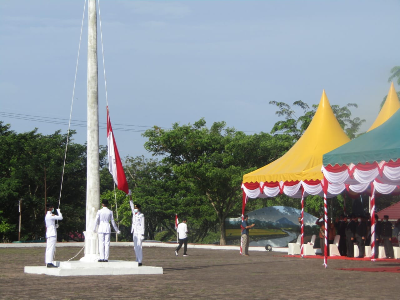 Kapten Inf Fajar Setiyawan (Perwira Upacara), Kapten Inf Mohd Arifin (Komandan Upacara), serta Pasukan Upacara melibatkan Personil TNI, Polri, Satpol PP, Dishub,PNS, PGRI, dan upacara berlangsung
