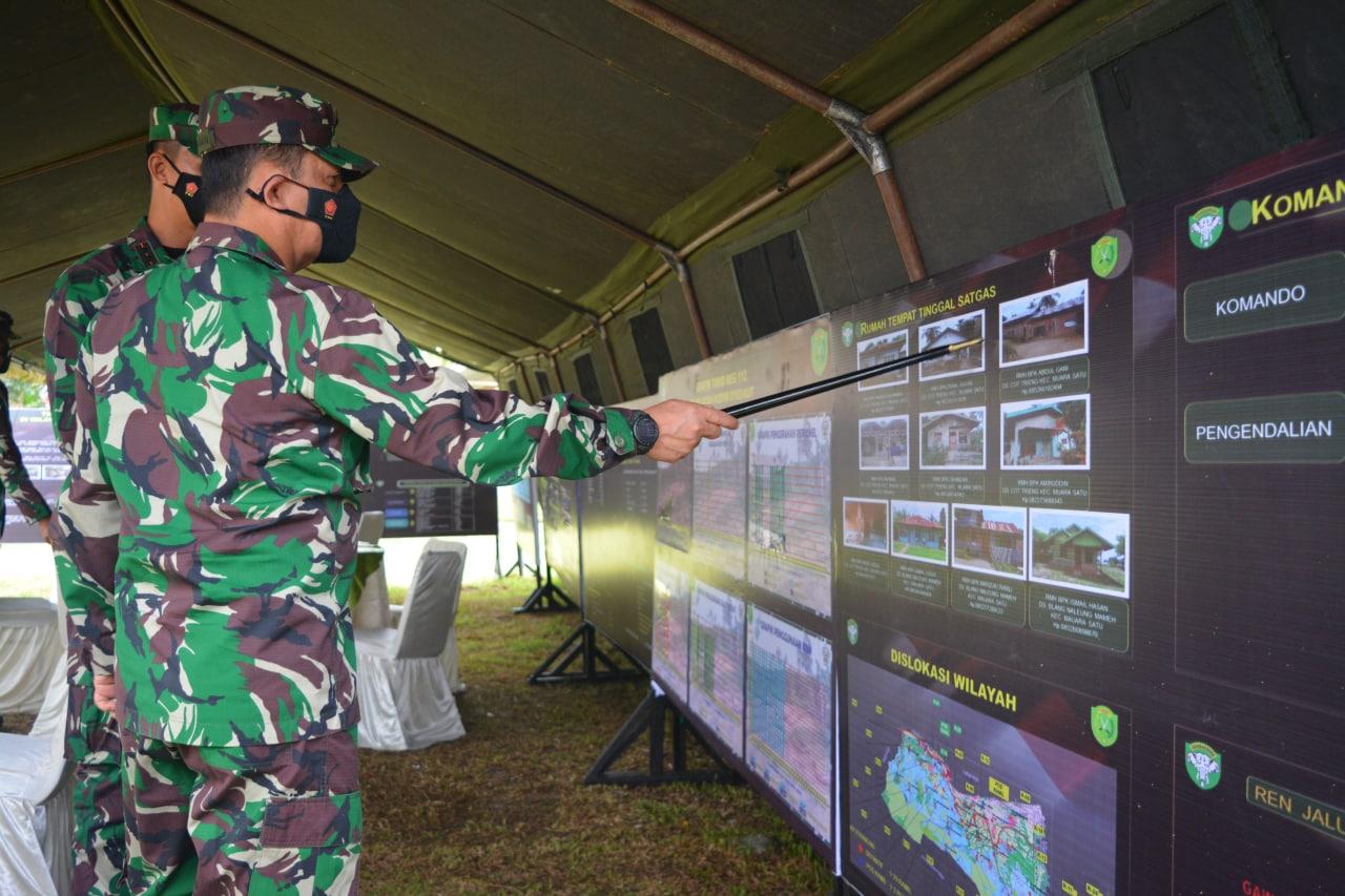 Lhokseumawe – Panglima Kodam Iskandar Muda ( Pangdam IM ) Mayjen TNI Achmad Marzuki meninjau pelaksanaan TNI Manunggal Membangun Desa (TMMD) Kodim 0103/Aceh Utara di Desa Cot Trieng,Kecamat Muara Satu,Kota Lhokseumawe,Rabu, (29/09/2021).