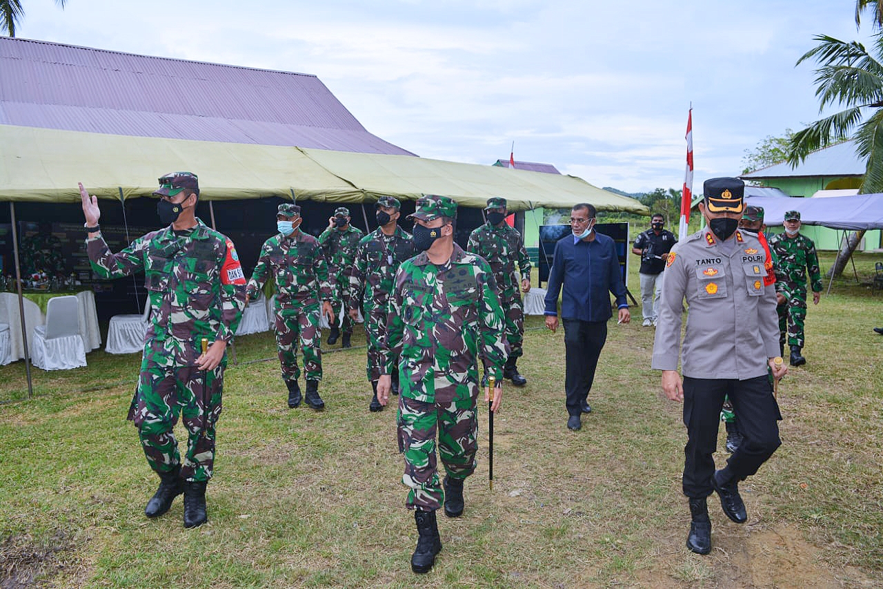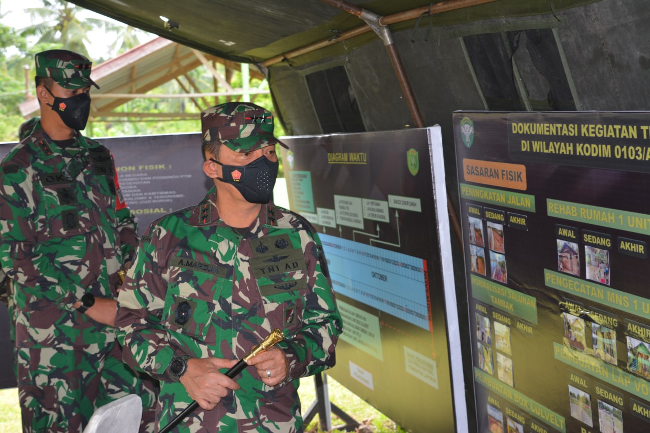 Lhokseumawe – Panglima Kodam Iskandar Muda ( Pangdam IM ) Mayjen TNI Achmad Marzuki meninjau pelaksanaan TNI Manunggal Membangun Desa (TMMD) Kodim 0103/Aceh Utara di Desa Cot Trieng,Kecamat Muara Satu,Kota Lhokseumawe,Rabu, (29/09/2021).