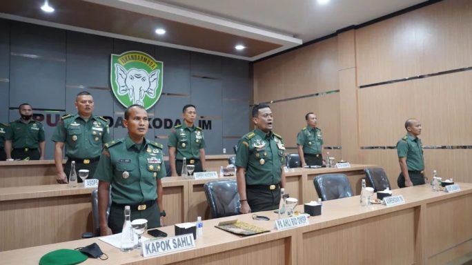 Banda Aceh – Pangdam IM Mayjen TNI Mohamad Hasan mengikuti Video conffrence (vicon) Seminar Akhir Pasis Dikreg XLIX Sesko TNI TA 2022 yang bertemakan “Pembangunan Kekuatan dan Kemampuan Kogabwilhan Dalam Menghadapi Dinamika Geopolitik Kawasan Indo Pasifik” di Puskodalops Kodam IM. Rabu, 20 Juli 2022