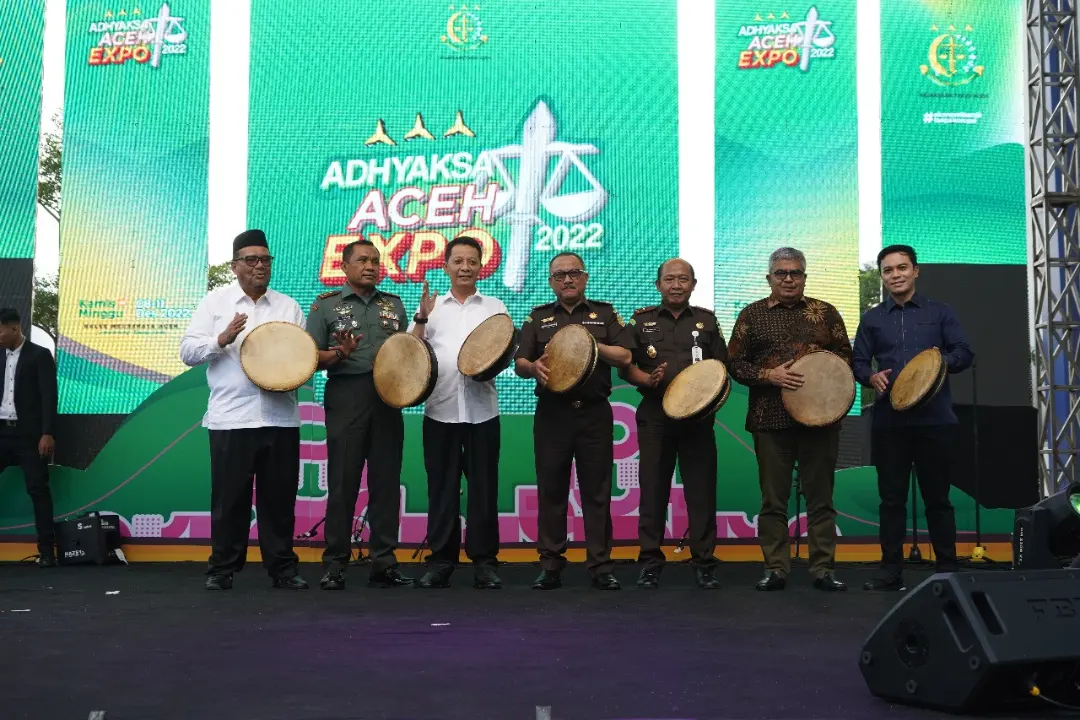 Selanjutnya acara dilanjutkan pemukulan rapai secara bersamaan oleh Pj. Gubernur Aceh, Pangdam IM, Kajati Aceh, Kapolda diwakili, Wali Nanggroe Aceh diwakili, Ketua DPRA diwakili dan dilanjutkan dengan peninjauan stand Adhyaksa Aceh Expo 2022.