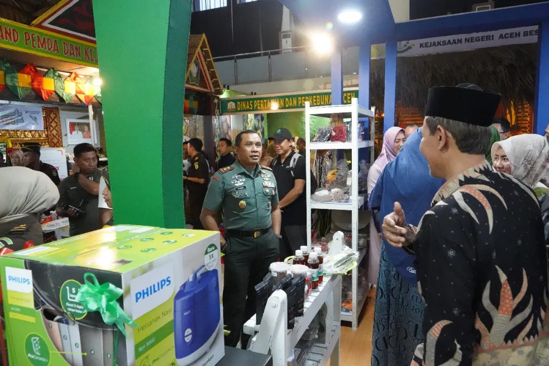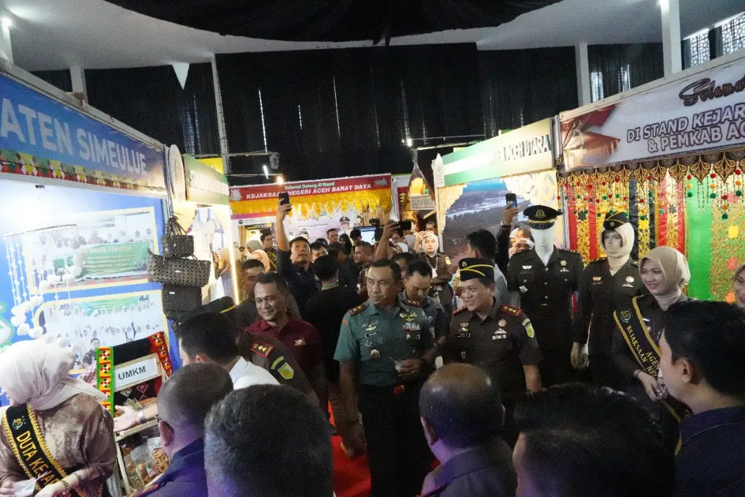 Banda Aceh – Panglima Kodam Iskandar Muda Mayjen TNI Mohamad Hasan menghadiri pembukaan Adhyaksa Aceh Expo 2022 di Bale Meuseuraya Aceh (BMA) Lampineung. Kamis Sore (8/12/22)