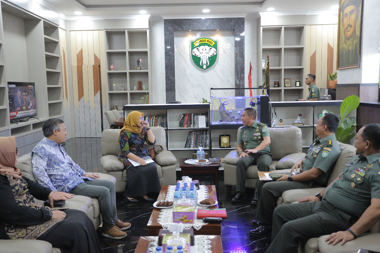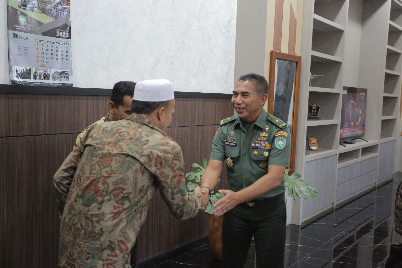 Banda Aceh. Kepala Staf Komando Daerah Militer Iskandar Muda (Kasdam IM) Brigjen TNI Hadi Basuki, S. Sos., M. M., M. Tr. (Han) yang didampingi Asintel Kasdam IM, Aspers Kasdam IM, Dan Aster Kasdam IM Menerima Audensi/Silaturrahmi dari Bawaslu Prov. Aceh Di Ruang Kerjanya. Kamis (26/01/22)