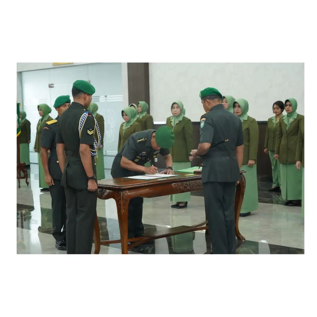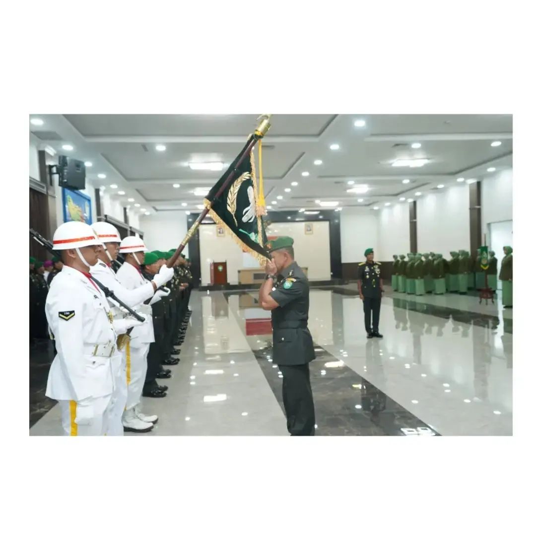 Banda Aceh. Panglima Komando Daerah Militer Iskandar Muda (Pangdam IM), Mayor Jenderal TNI Mohamad Hasan memimpin Upacara Serah Terima Jabatan (Sertijab) Kepala Kelompok Staf Ahli (Kapok Sahli) Pangdam Iskandar Muda yang bertempat di Gedung Malahayati Makodam IM. Kamis (06/02/2023).