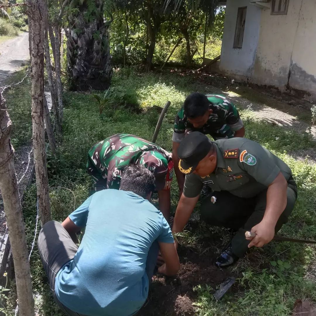 Nagan Raya,- Dandim 0116/Nagan Raya Letkol Inf Tony Setyo Widodo, Danposramil Posramil Kuala Pesisir Pelda Sutrisno beserta Babinsa memberikan bantuan bibit tanaman Buah Buahan kepada masyarakat di wilayah Kecamatan Kuala Pesisir. bertempat di halaman Kantor Posramil Kuala Pesisir, Kamis (09/02/2023)