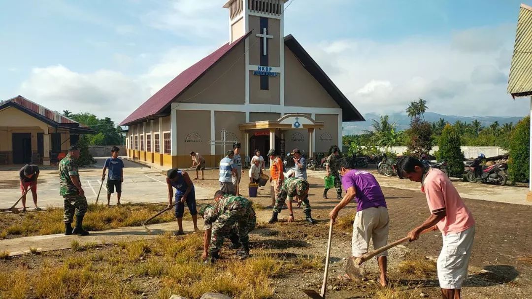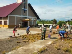 Jalin Kerukunan Antar Umat Beragama Babinsa Karya bhakti Bersihkan Gereja