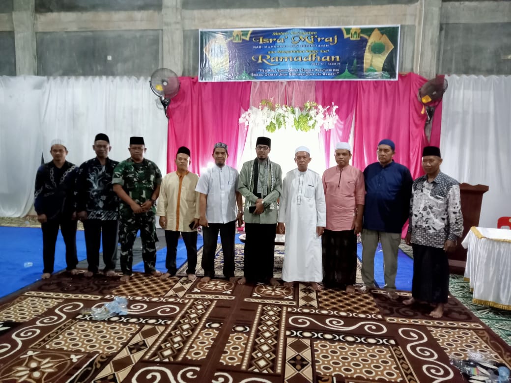 ACEH TAMIANG,MEDIA CENTER DIM 0117/ATAM- Melaksanakan tugas kewilayahan, Danramil 07/Kejuruan Muda Kapten Inf Nunu Rukmana aktif menghadiri kegiatan-kegiatan bersama masyarakat, salah satunya seperti Sabtu malam dini, yaitu menghadiri peringatan Isra’ Mi’raj Nabi Besar Muhammad SAW 1444 H bertempat di Masjid Al Ikhsan Desa Sungai Liput, kecamatan Kejuruan Muda, kabupaten Aceh Tamiang. Minggu (12/03/2023)?