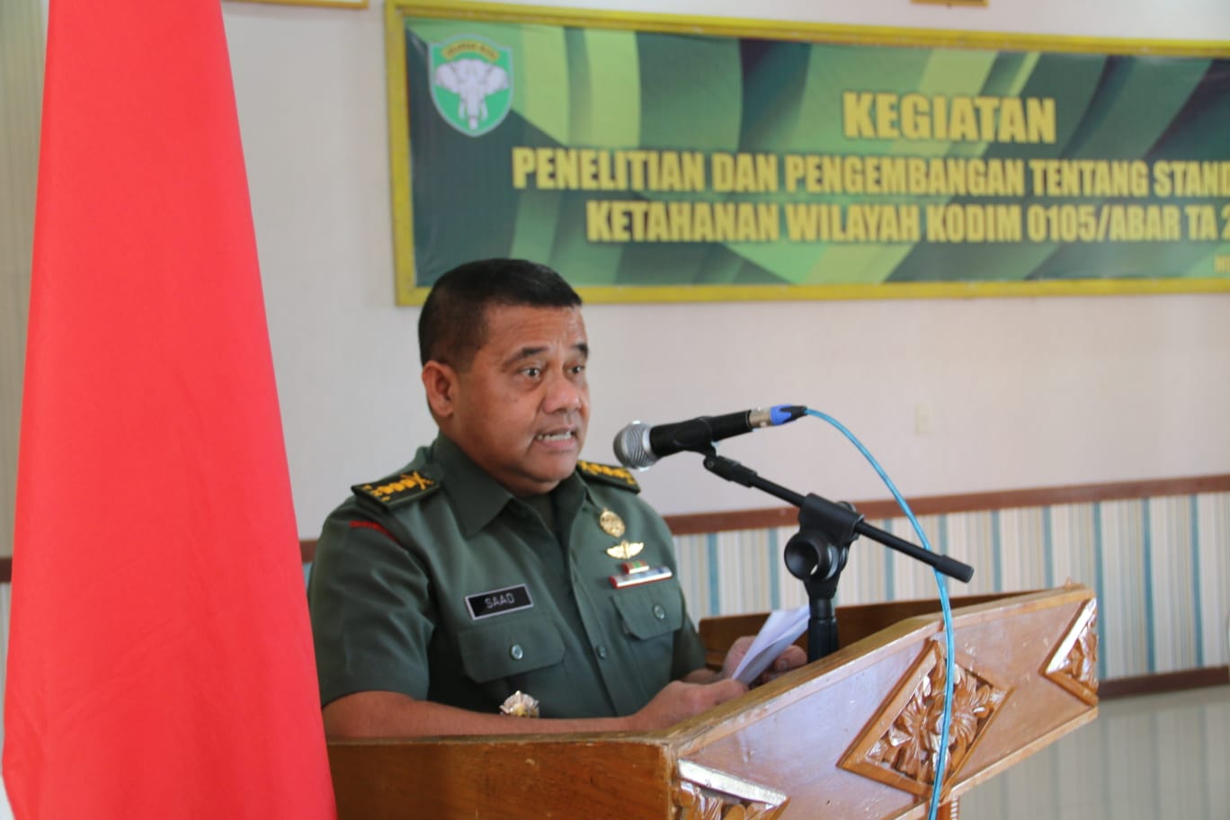 Di Podium yang sama, Katim Pusterad Kolonel Inf Saad Miyanta juga melemparkan apresiasi dan terimakasihnya kepada Kodim 0105/Abar dan para Responden yang telah mendukung kegiatan Litbang yang merupakan Progja dari Pusterad.