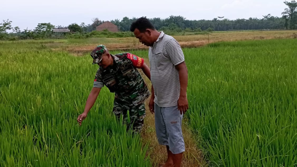 Memastikan langsung perkembangan pertumbuhan padi milik petani yang sebelumnya pada Awal musim tanam Babinsa senantiasa mendampingi hingga dengan turun ke sawah.