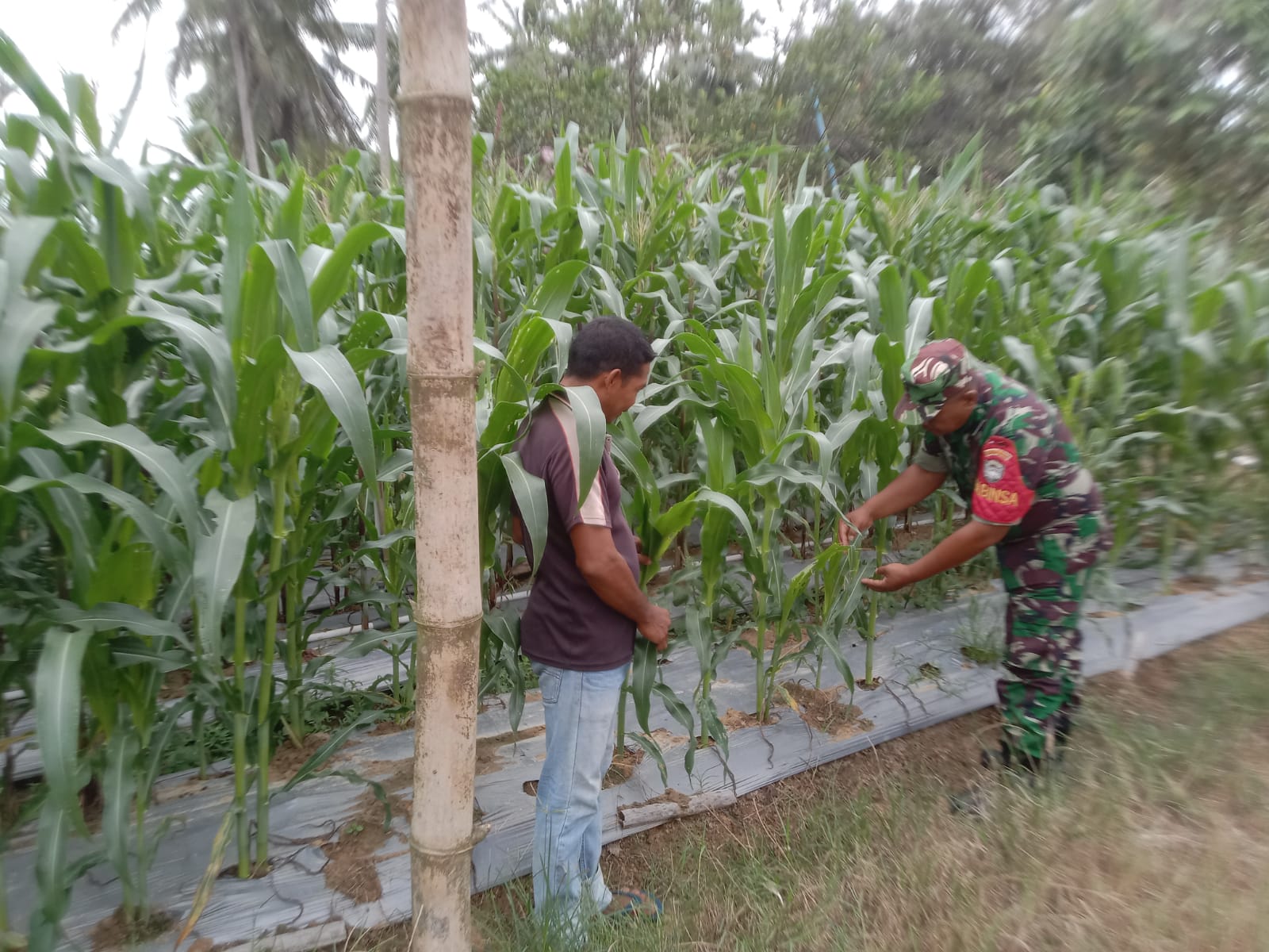Aceh Timur – Babinsa Koramil 05/Idr Kodim 0104/Aceh Timur, Sertu Abdullah melakukan pengecekan perkembangan tanaman jagung milik Bapak M Nur selaku ketua kelompok tani seorang warga di Desa Buket Pala Kecamatan, Idi Rayeuk Kabupaten, Aceh Timur Rabu (05/04/2023).