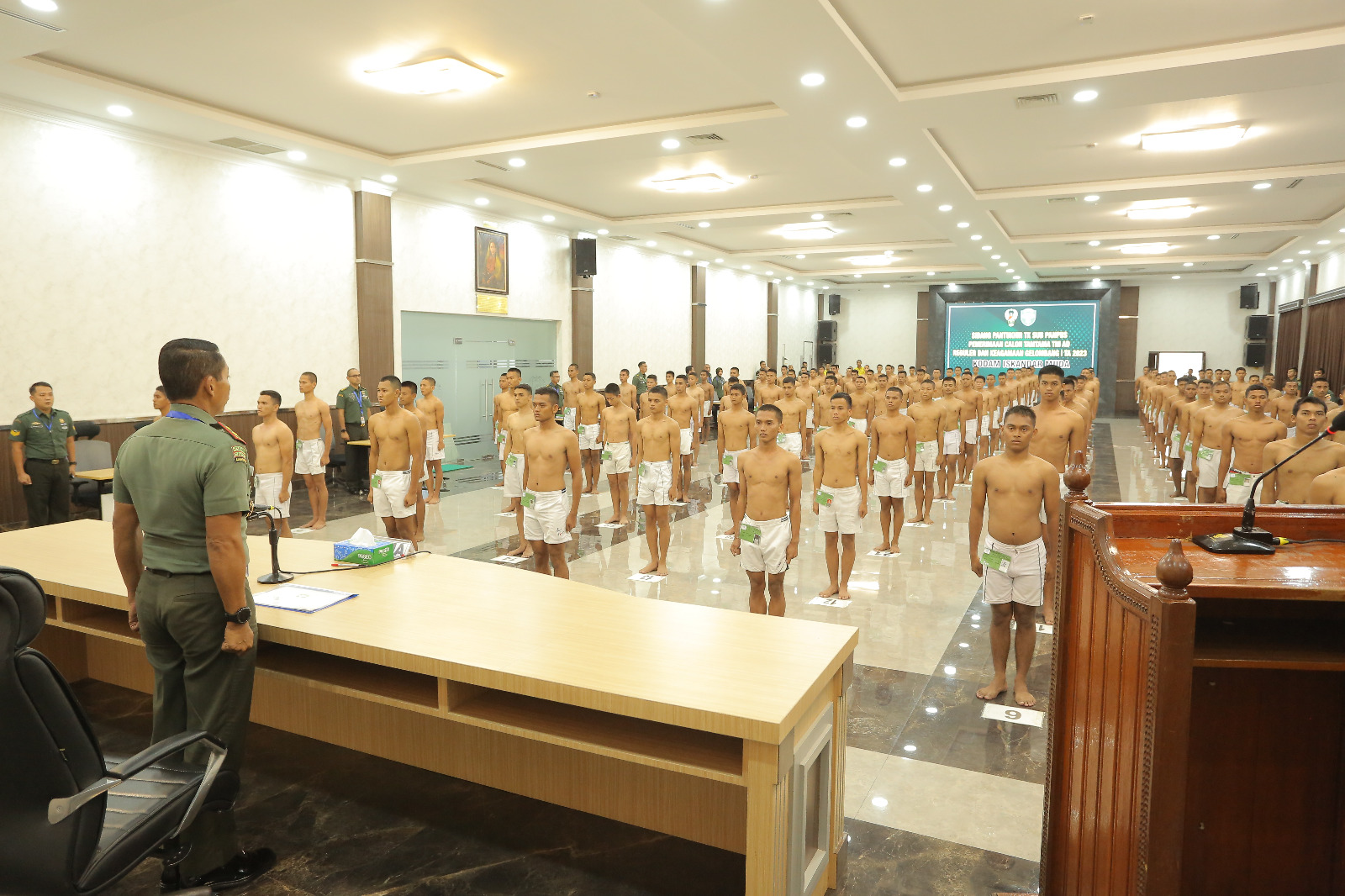 Banda Aceh – Panglima Komando Daerah Militer Iskandar Muda (Pangdam IM) Mayjen TNI Novi Helmy Prasetya, S.I.P., M.I.P., memimpin sekaligus secara resmi membuka Sidang Pantukhir Calon Tamtama (Cata) PK TNI AD Sumber Reguler dan Keagamaan Gelombang I TA 2023 Subpanpus Provinsi Aceh di Ruang Yudha, Makodam IM. Kamis (13/04/23).