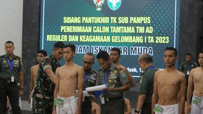 Pangdam IM pimpin Sidang Pantukhir Tamtama PK TNI AD Reguler dan Keagamaan Gel. I TA 2023 Subpanpus Provinsi Aceh.