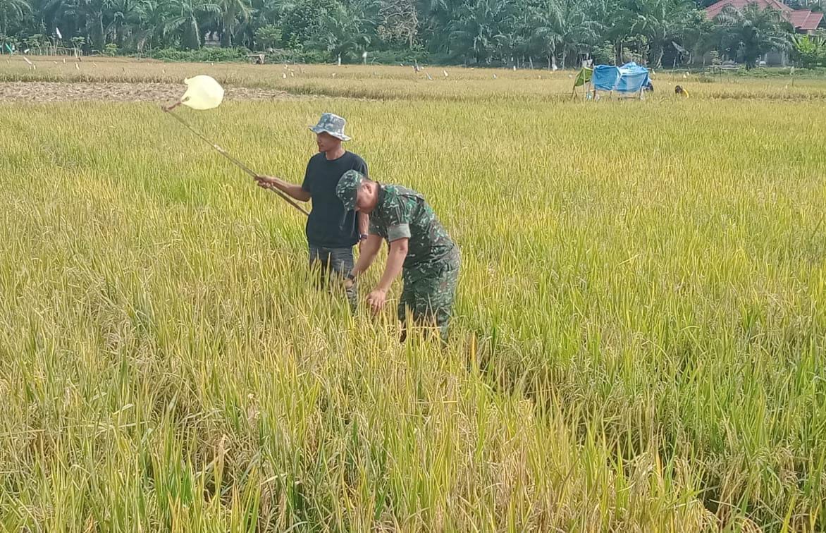 Pantau Perkembangan Padi Siap Panen, Babinsa Turun Kesawah lakukan Pendampingan