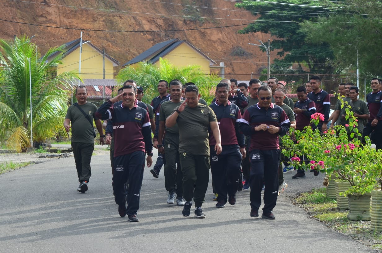Pantauan, usai memimpin apel pagi gabungan, Dandim dan Kapolres beserta para Komandan/Kepala Satuan mengomandoi gerak jalan santai menuju jalan lingkar perkantoran Pemkab Abdya dan kembali finish di Mapolres.