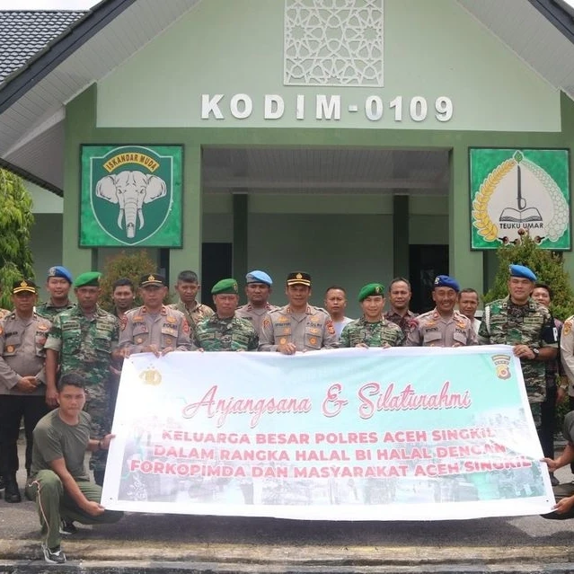 Jalin Sinergitas TNI-POLRI, Kapolres Bersama PJU Polres Aceh Singkil Hadiri Halal Bihalal di Makodim 0109/Aceh Singkil