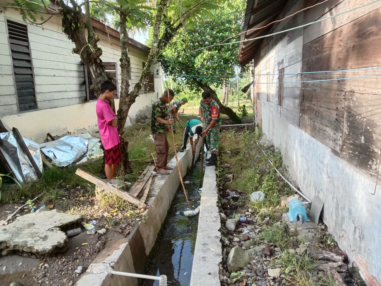 Kutacane – Personil Babinsa Koramil 0108-01/Lawe Sigala Serka perangin angin jajaran Kodim 0108/Agara bersama warga masyarakat melaksanakan pembersihan parit di Desa Lawe Pekhidenen Kecamatan Lawe Sigala gala Kabupaten Aceh Tenggara, Senin (08/05/23).