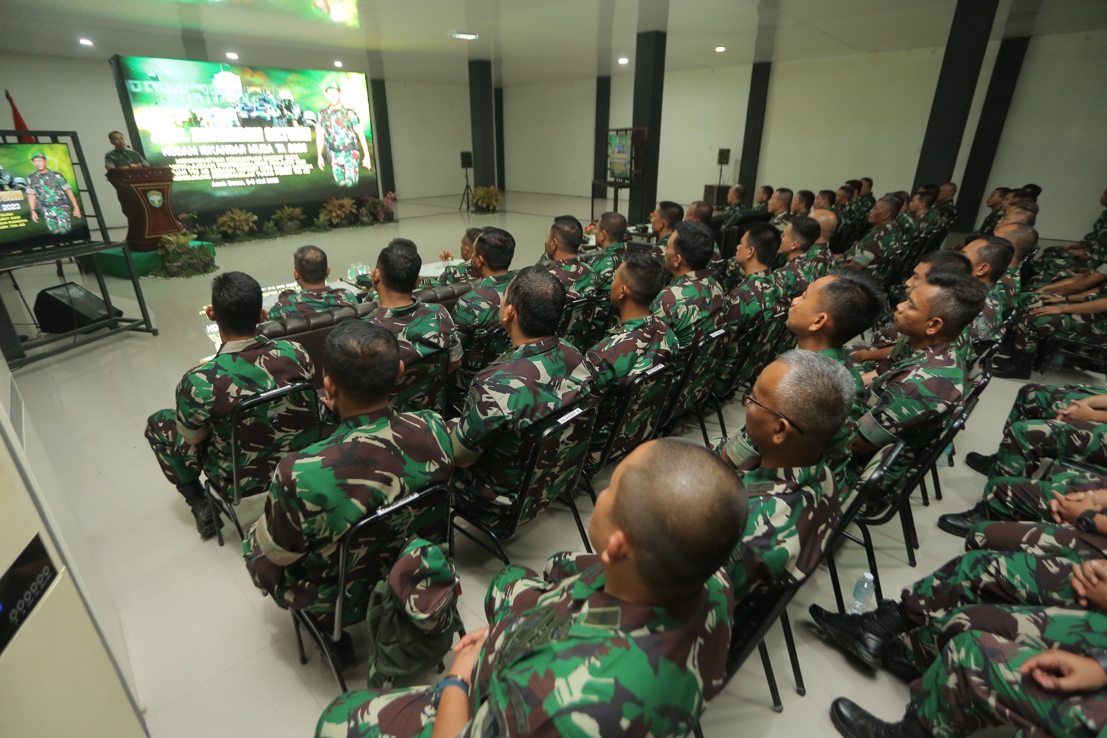 “Dengan demikian diharapkan agar semua Informasi, Arahan, Pembekalan dan semua Penekanan yang para Perwira terima pada Apel Dansat ini, dapat betul-betul diimplementasikan secara nyata, tulus, ikhlas dan berani untuk melakukan berbagai terobosan dalam rangka perbaikan kualitas di satuan masing-masing, sehingga Prajurit Sanggamara menjadi Solid, Profesional dan Sejahtera”. Ujar Panglima.