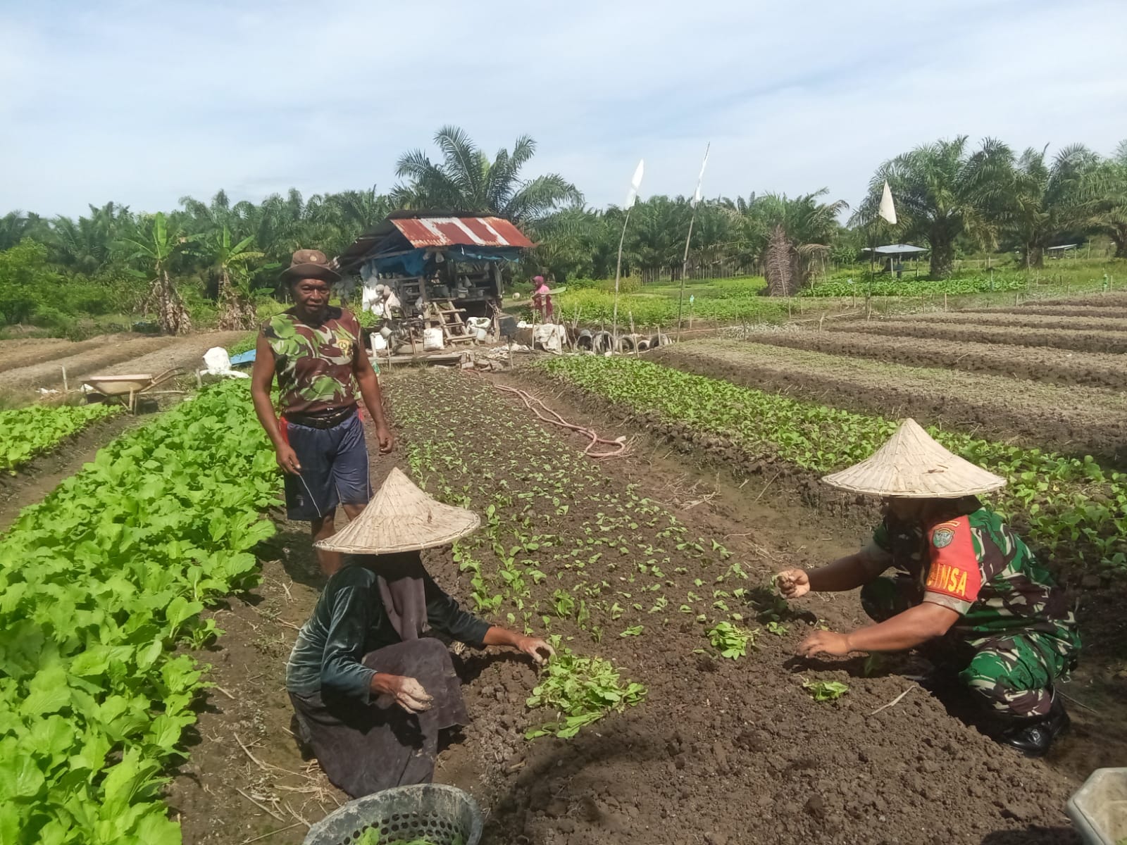 Seperti halnya yang dilakukan oleh Babinsa Posramil Kuala Pesisir Serda Firdaus melaksanakan pendampingan kepada petani bpk Afibudin yang merupakan warga Desa Purwosari dalam berkebun berupa penanaman dan perawatan tanaman sayur-sayuran Sawi dikebun miliknya.