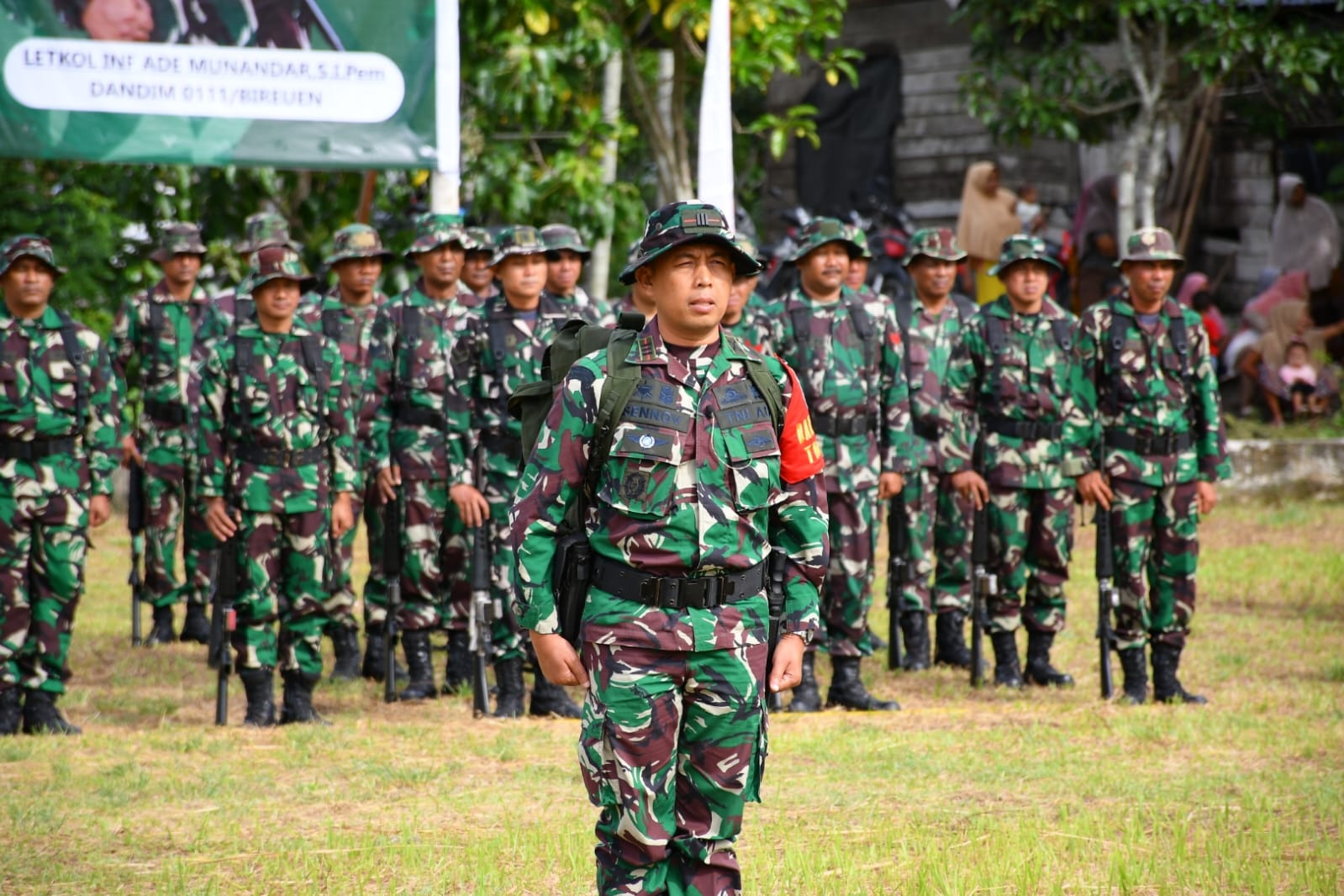 Bireuen-Komando Distrik Militer 0111/Bireuen melaksanakan Upacara Pembukaan TMMD ke-116 Tahun 2023 dengan tema “Sinergi Lintas sektoral mewujudkan kemanunggalan TNI dan Rakyat” bertempat di lapangan Bola Kaki Desa Sarah Sirong Kecamatan Jeumpa Kabupaten Bireuen,Rabu (10/05/2023)