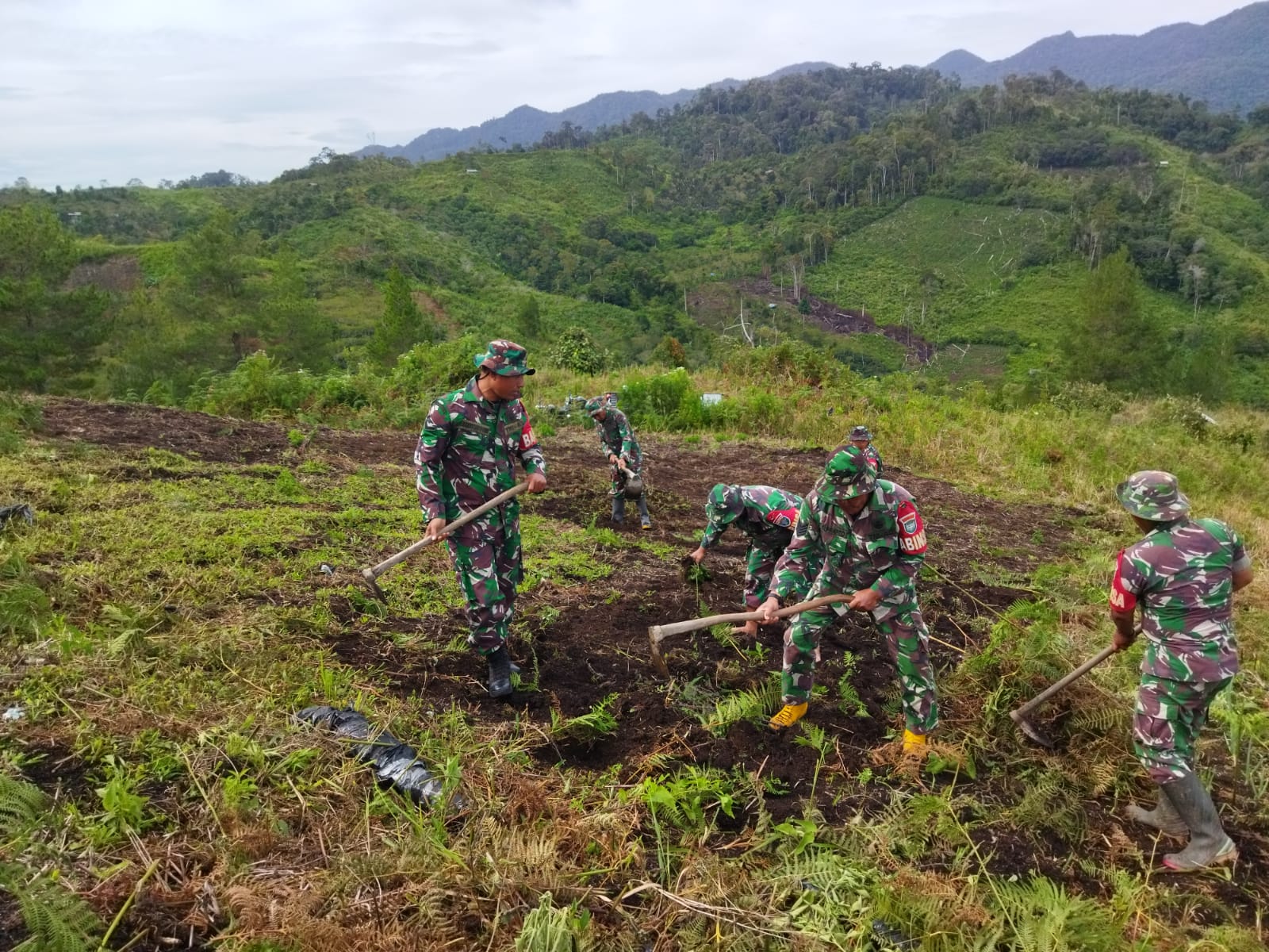 Takengon- Untuk terwujudnya ketahanan pangan nasional, anggota Koramil 04/Bintang, membuka lahan pertanian seluas 2,5 hektar untuk ditanami komoditas jagung yang merupakan lahan kosong bertempat di desa Dedamar Kec. Bintang Kab. Aceh Tengah. Rabu (10/05/23).