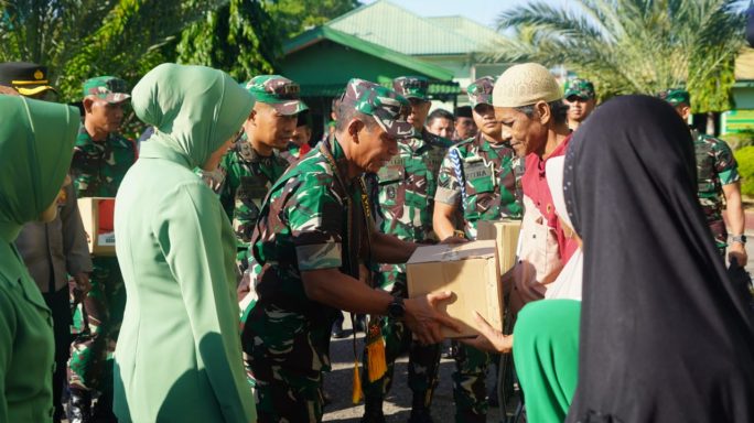 Selesai memberikan pengarahan Pangdam IM dan Ketua Persit KCK Daerah Iskandar Muda berkesempatan memberikan bantuan sosial dan santunan kepada masyarakat.