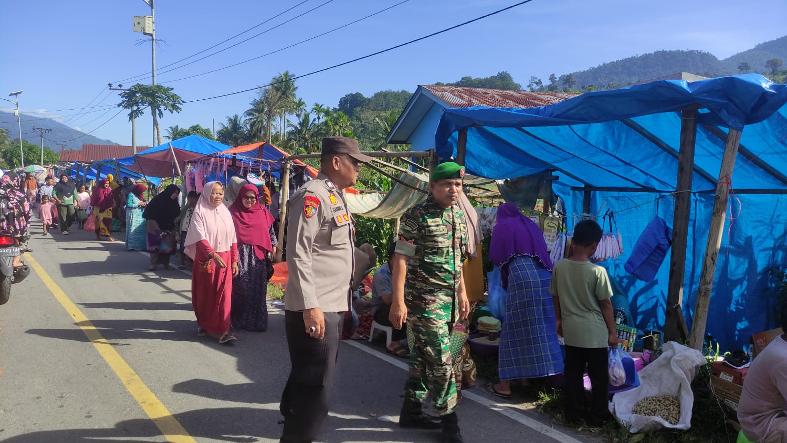 Kutacane – Babinsa Posramil Ketambe Serda Hendra Putra dan Koptu Khairul Amri jajaran Kodim 0108/Agara bersama Polsek ketambe melaksanakan pengaturan lalulintas yang berada di pasar tumpah mingguan di Desa Lak lak kecamatan Ketambe Kabupaten Aceh Tenggara, Sabtu (13/05/23).